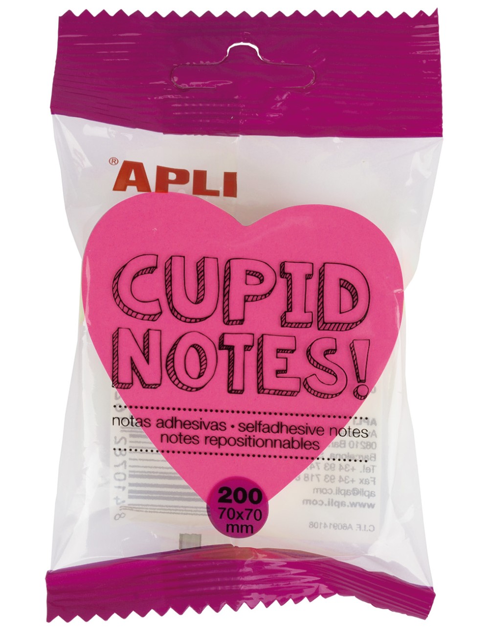 Bloc de 200 feuilles de notes adhésives en forme de cœur de 70 x 70 mm, en 4 couleurs fluo assorties (jaune, rose, vert, orange), parfait pour des messages originaux et réutilisables grâce à leur adhésif repositionnable. |