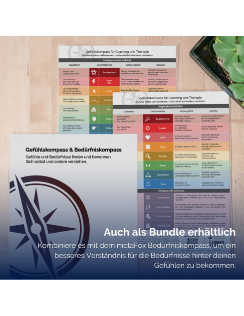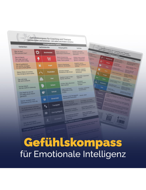 Trouver et nommer des sentiments et émotions n'est souvent pas facile. Cela peut être un défi dans les processus thérapeutiques ou de coaching. La Boussole des Émotions met en avant l'apprentissage de la compétence émotionnelle. Cet outil utile soutient le dialogue dans les processus de coaching et de thérapie. La Boussole des Émotions est également un précieux repère pour la clarification personnelle des émotions et pour enrichir le vocabulaire de nos ressentis.