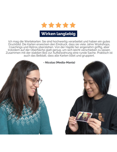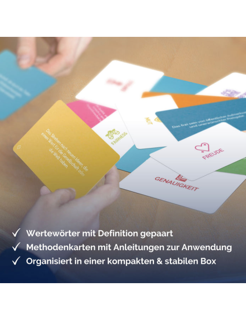 ✔ Hochwertige und langlebige Wertekarten mit abgerundeten Ecken zur mehrfachen Wiederverwendung