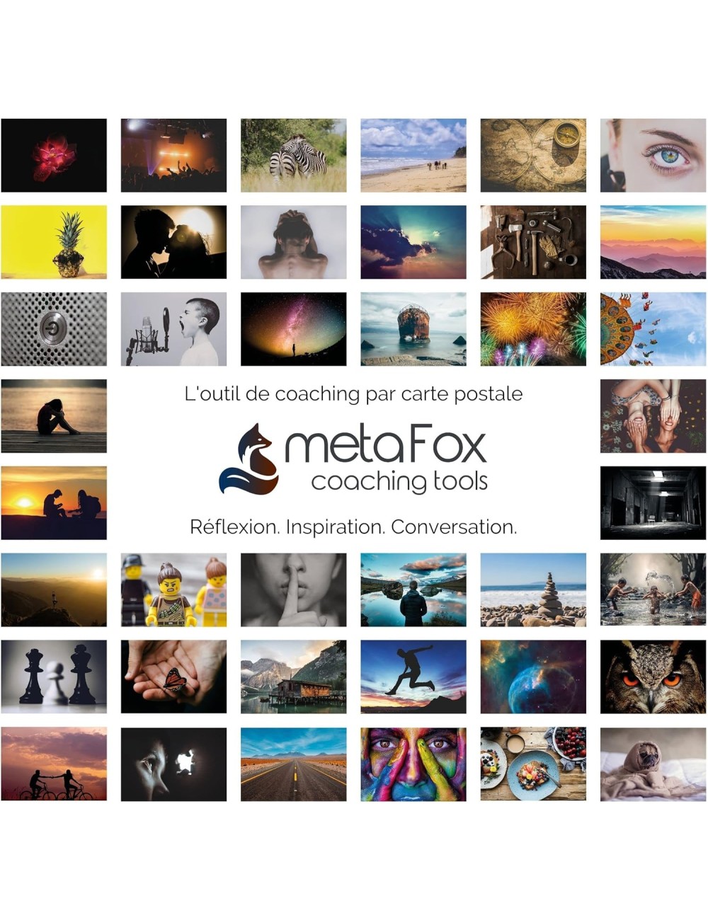 Les images profondes metaFox combinent 52 cartes illustrées évocatrices et de puissantes questions de coaching dans un ensemble de cartes postales pour adultes. Les images profondes « Le monde des émotions » vous guident dans un voyage de découverte de soi en entrant profondément en contact avec vos émotions et votre expérience intérieure.